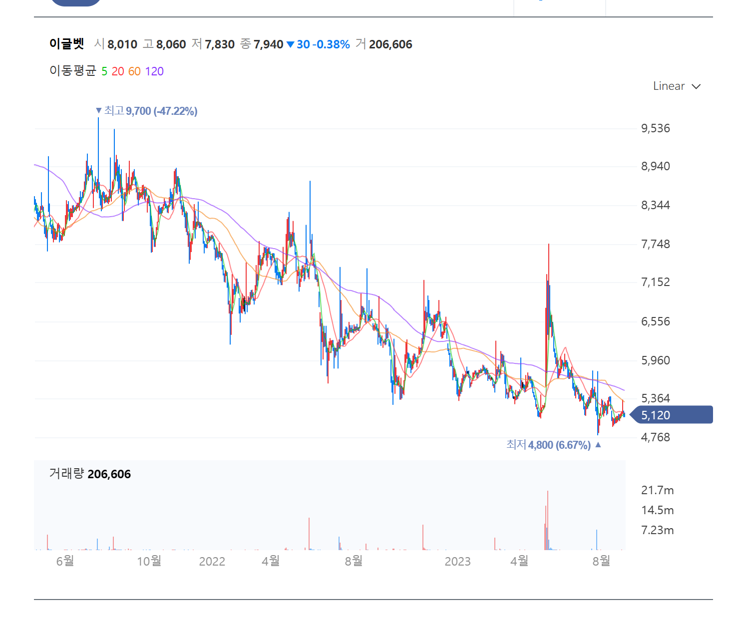 최저점을 찍고 지금은 약간 회복한 모습닙니다.