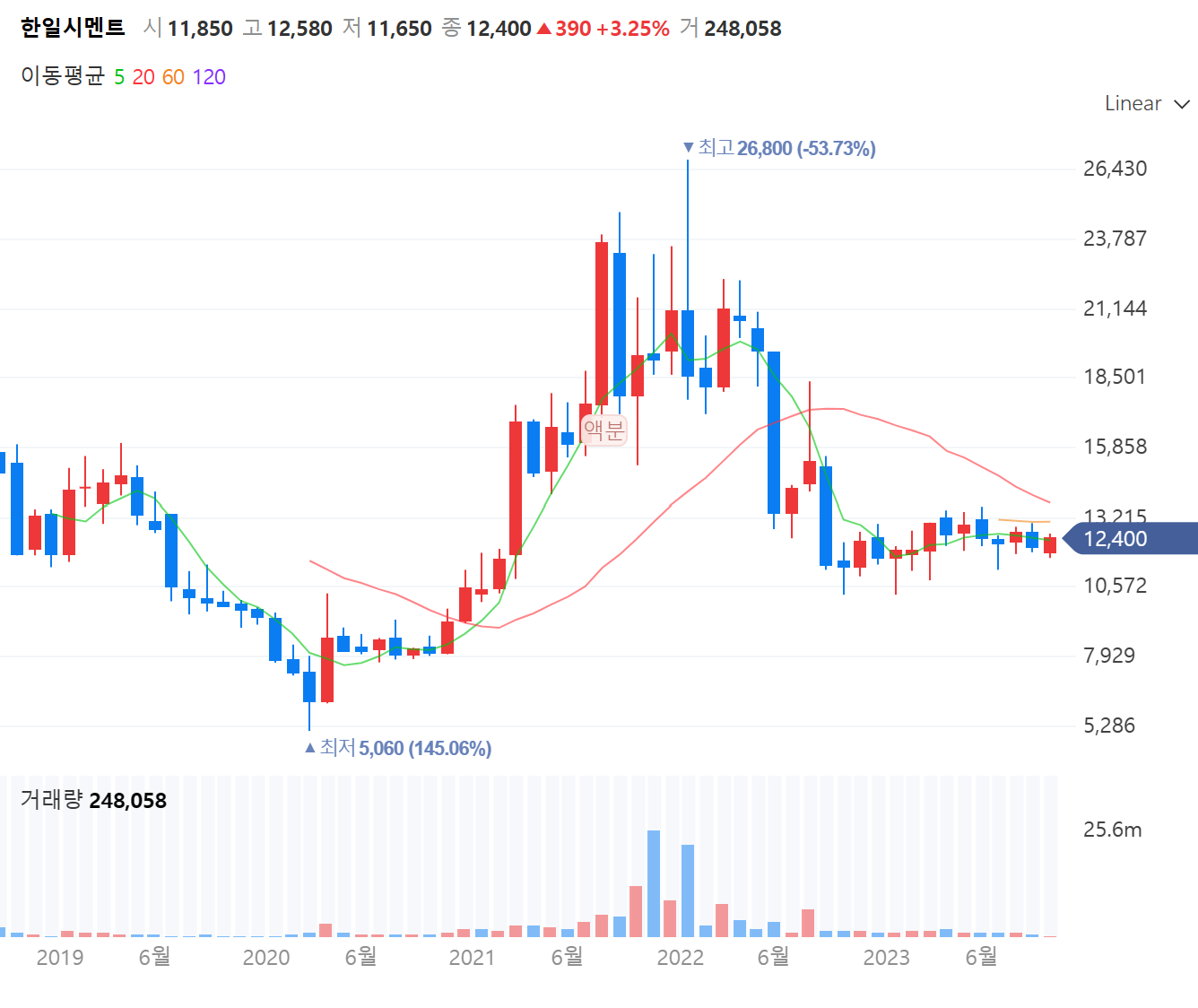 중간에 액면분할이 한번 있었네요..