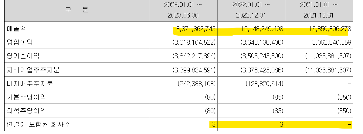 또한 3년 연속 당기순이익 적자는 가슴이 아파지네요